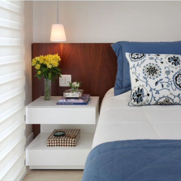A mesa de cabeceira Dakar possui duas gavetas, a superior tem dua profundidade menor que a inferior, isso faz com que o design da peça seja harmônico.