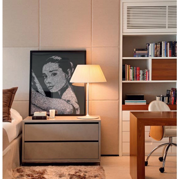 O criado mudo Modena foi desenhado para deixar seu quarto com elegância, sua base em aço é bem fina deixando um acabamento moderno no ambiente. Confira abaixo os acabamentos possíveis.