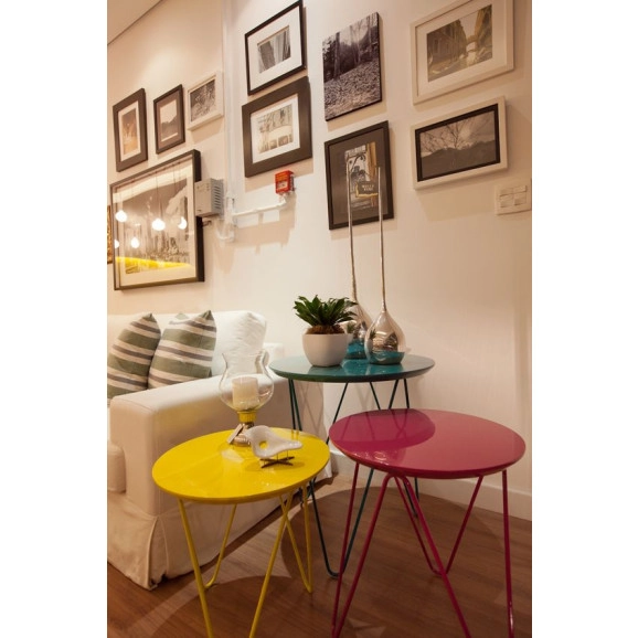 Uma peça moderna que pode compor sua sala de estar, seu quarto, hall de entrada e por que não um escritório. Seu tampo é pintado em laca em duas opções, fosco ou brilho, sua base recebe acabamento em pintura epóxi, você pode escolher entre três opções de tamanhos.
